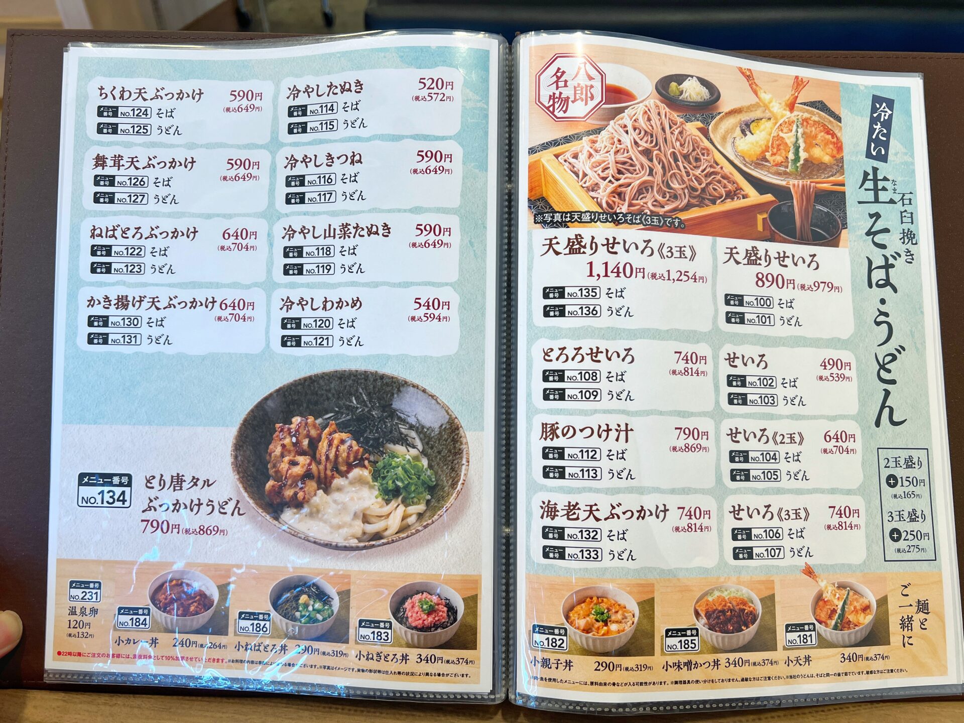 「八郎そば 南荻島店」のメニュー&値段